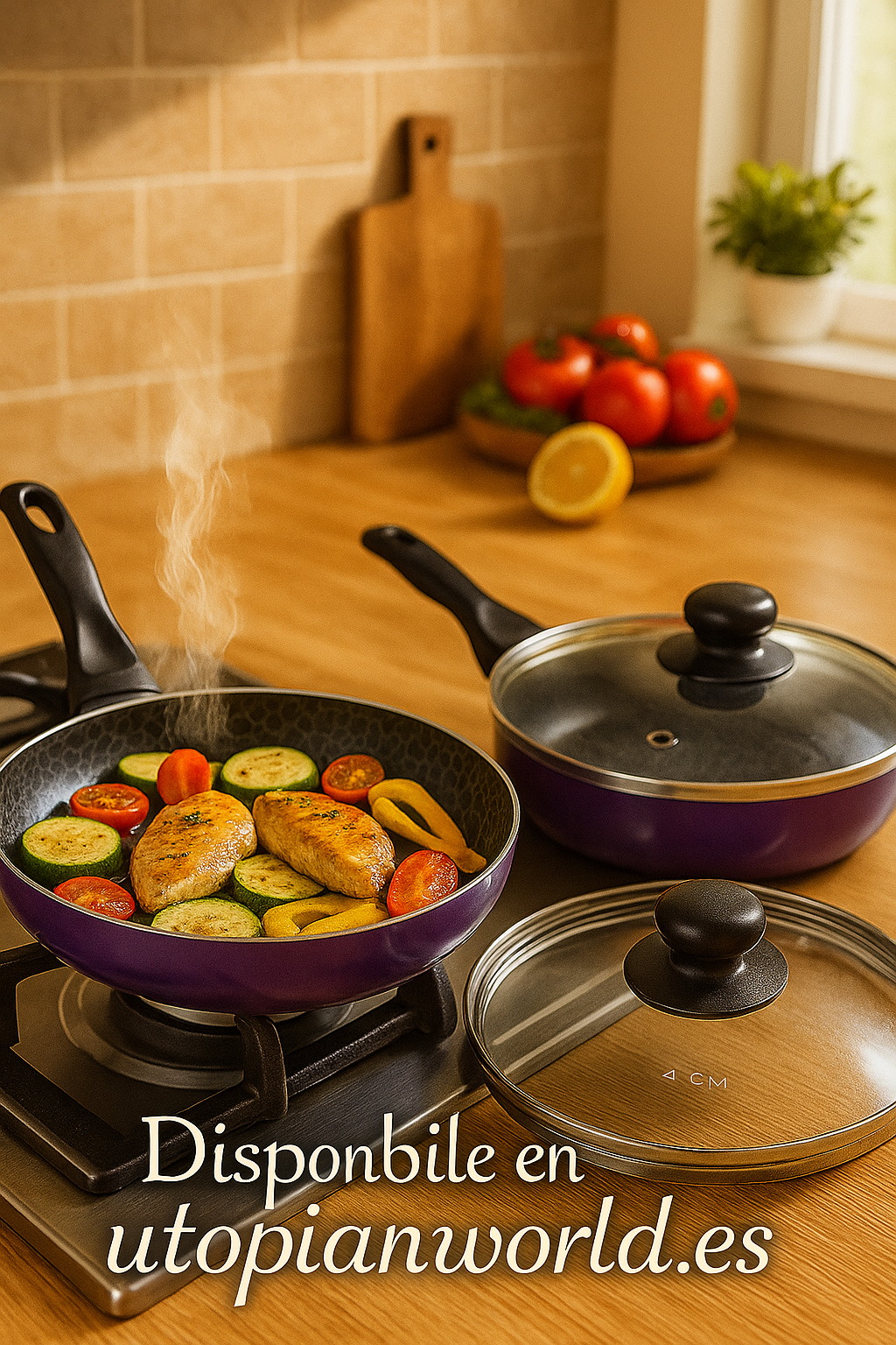 El conjunto también incluye dos tapas que se ajustan perfectamente a las sartenes. Estas tapas están diseñadas para ayudar a retener el calor y la humedad, lo que permite una cocción más eficiente. También ayudan a prevenir salpicaduras y derrames mientras cocinas, manteniendo limpia tu cocina.